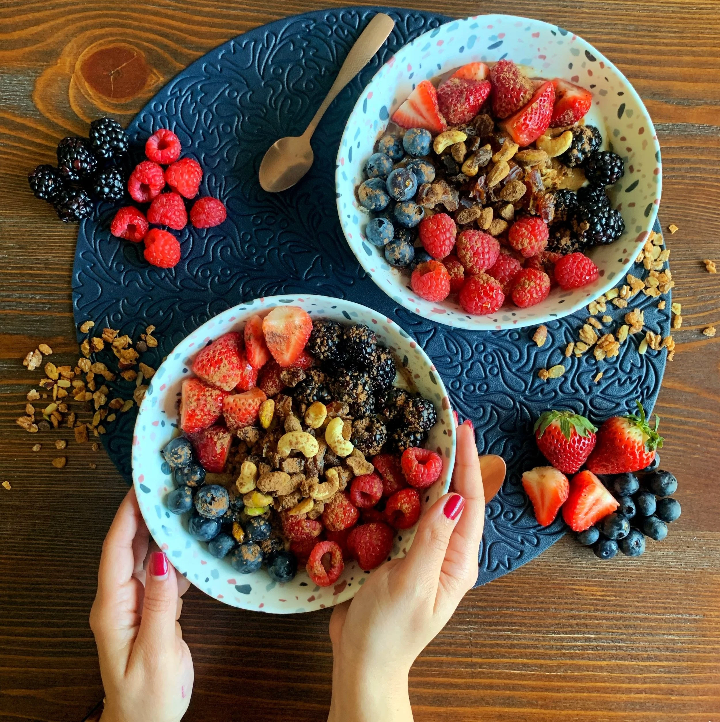 Granola: You can use your favorite granola blend for this. Granola adds the perfect texture and crunch to the bowl. It can be pretty high in sugar, so make sure to check the label. I love using a mix of Made Good's cocoa crunch crispy light granola & Nature's path caramel pecan grain free granola